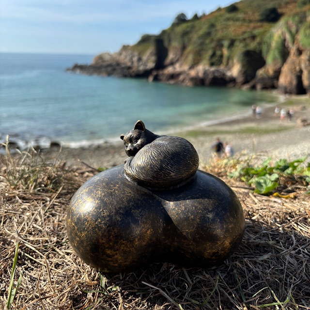 Cat Resting On a Heart Cremation Urn Memorial Bronze Sculpture. For example is a perfect way to celebrate the life of a loved family cat.