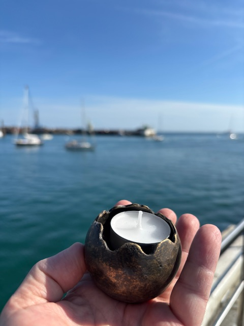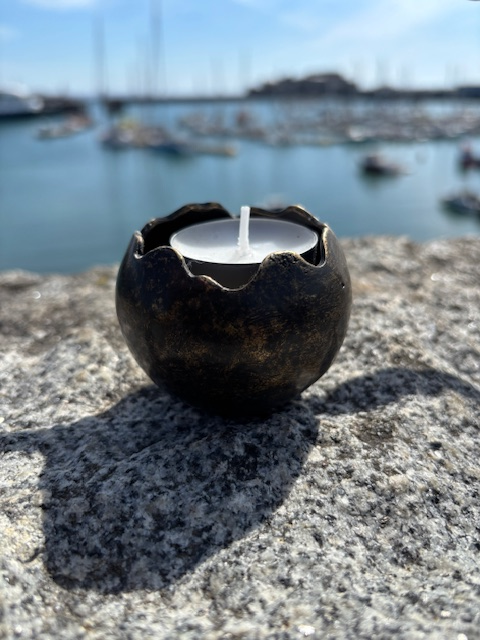 Mini Candle Holder Memorial Cremation Urn Bronze Sculpture. The perfect way to store your loved ones ashes. What could be a more natural way to keep the ashes safe and close than a long lasting. Totally fine solid bronze weatherproof memorial ornament. These beautiful bronze sculptures could also be engraved and are easy to place at a graveside or in a garden. A fine cast bronze sculpture will endure any weather condition. So can be placed in any situation and will stand the test of time, unchanged. The small Memorial Urns are perfect for sharing ashes. spreading the passed across the world and keeping there memory forever.